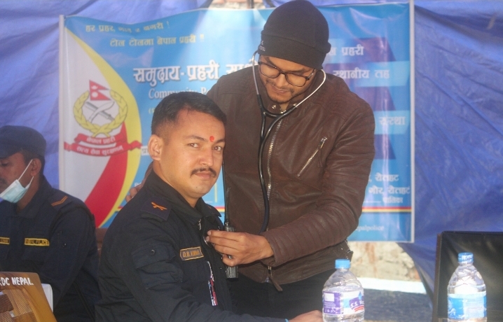 प्रहरी कर्मचारी र थुनुवाहरुका लागि नि:शुल्क स्वास्थ्य शिविरकाे आयाेजना