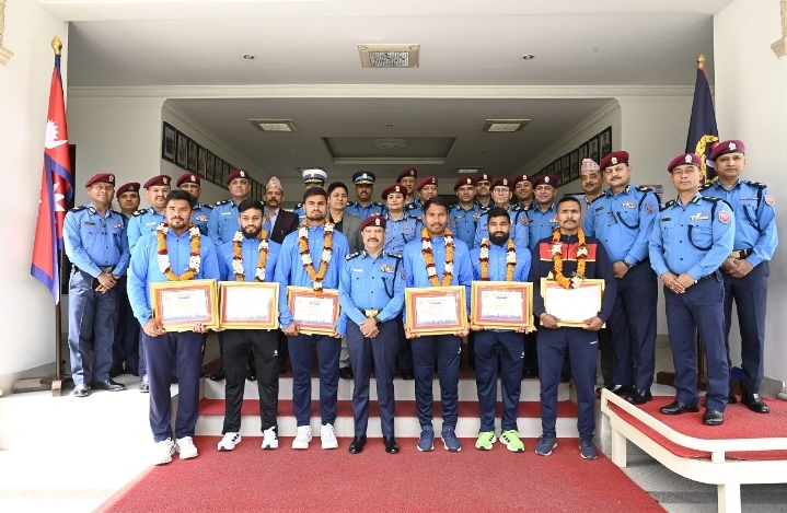 नेपाल प्रहरी खेलकुद समितिका अध्यक्ष प्रहरी महानिरीक्षक बसन्त बहादुर कुँवरले नेपाल प्रहरी प्रधान कार्यालयमा बुधबार आयोजित कार्यक्रमबीच उहाँहरूलाई प्रशंसापत्र तथा नगद पुरस्कारद्वारा सम्मान गर्नुभएको हो । सम्मानित हुने खेलाडीहरूमा प्रहरी कर्मचारीहरू नेपाल पुलिस क्रिकेट टिमका क्याप्टेन दिपेन्द्र सिंह ऐरी, कुशल भुर्तेल, मोहमद आरिफ शेख, ललित राजवंशी एवम् नेपाल प्रहरीमा आवद्ध करण केसी र गुल्सन झा रहेका छन् ।