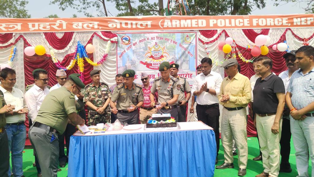अखिलेश कुमार यादव ।जेठ १४ गते। सशस्त्र प्रहरी बल नेपाल ४० न. गण पिलुवा बाराको आयोजनामा २३ औं स्थापना दिवस विभिन्न कार्यक्रमका साथ सम्पन्न भएको छ। सशस्त्र प्रहरी बल नम्बर ४० गण हेड क्वाटर पिलुवा बाराले सोमबार एक कार्यक्रमको आयोजना गरी स्थापना दिवस मनाएको हो । कार्यक्रमलाई सम्बोधन गर्दै कार्यक्रमका प्रमुख अतिथि समेत रहेका २ नम्बर बाहिनी मुख्यालयका गणपति सशस्त्र प्रहरी नायब महानिरिक्षक दिपेन्द्र साहले कठिन परिस्थितिमा पनि सशस्त्र प्रहरीले आफ्नो जिम्मेवारी इमानदारीपूर्वक बहन गर्न सफल भएको बताए ।सशस्त्र प्रहरी बलले विपद्, सीमा सुरक्षा, शान्ति सुरक्षामा अहम् भूमिका निर्वाह गर्नुका साथै सरोकारवाला निकायहरू सँगको समन्वय सहकार्यमा सामाजिक कार्यमा पनि अहम् भूमिका निर्वाह गर्दै आइरहेको बताए ।